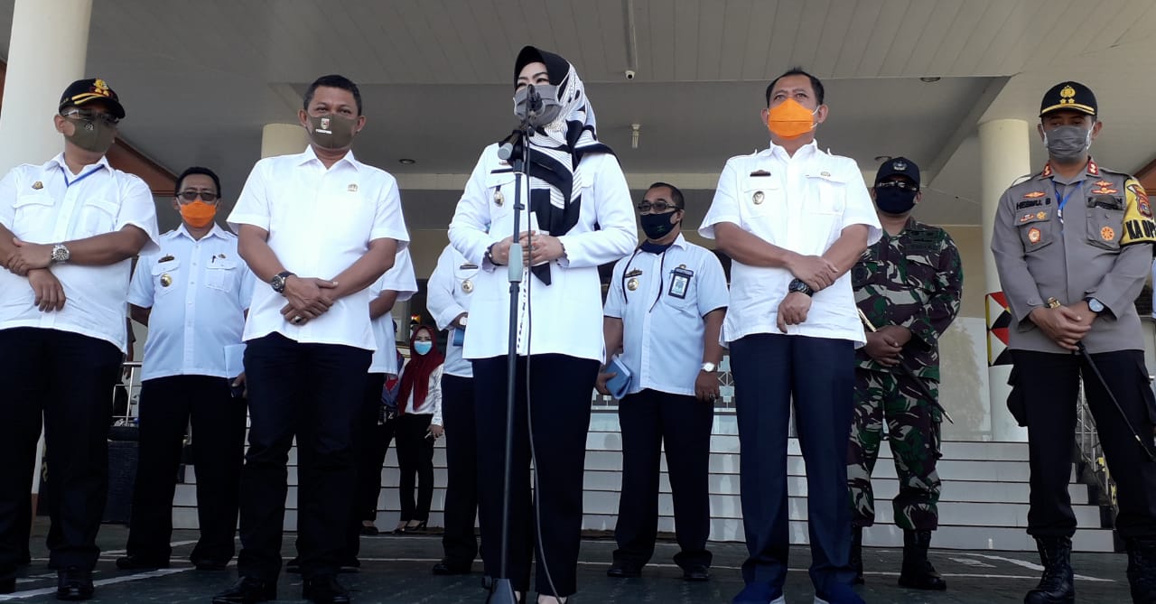 Pelepasan di Halaman Kantor Pemkab, dipimpin langsung Bupati Tanggamus Hj. Dewi Handajani bersama Wakil Bupati Hi. AM. Safii, bersama jajaran Forkopimda Tanggamus, Rabu (22/4/20).