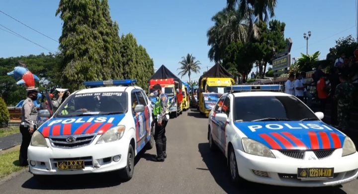 Sementara itu, mewakili Kapolres AKBP Hesmu Baroto, Kabag Ops Kompol Bunyamin mengatakan bahwa pihaknya juga melakukan pengawalan distribusi pangan dengan menerjunkan Sat Lantas dan Bhabinkamtibmas.