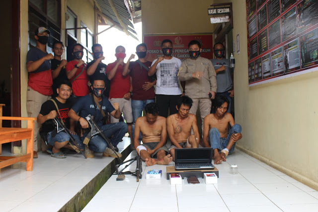 “Berdasarkan penyelidikan laporan tersebut, ketiga tersangka ditangkap dinihari tadi, Selasa, 28 April 2020 sekitar pukul jam 02.00 Wib,” ungkap AKP Edi Qorinas didampingi Kapolsek Limau AKP Oktafia Siagian, SH dan jajaran Tekab 308 di koridor Satreskrim, Selasa (28/4) pagi.