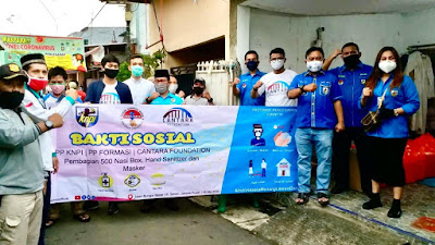 POLIS, Jakarta | DPP KNPI bekerjasama dengan PP FORMASI dan CANTARA FOUNDATION yang juga pengurus pusat Formasi membagikan 500 nasi box, 250 botol handsanitizer dan air meneral di jalan Bungur besar kelurahan Bungur kecamatan Senen, Jakarta Pusat. Rabu, (6 Mei 2020).