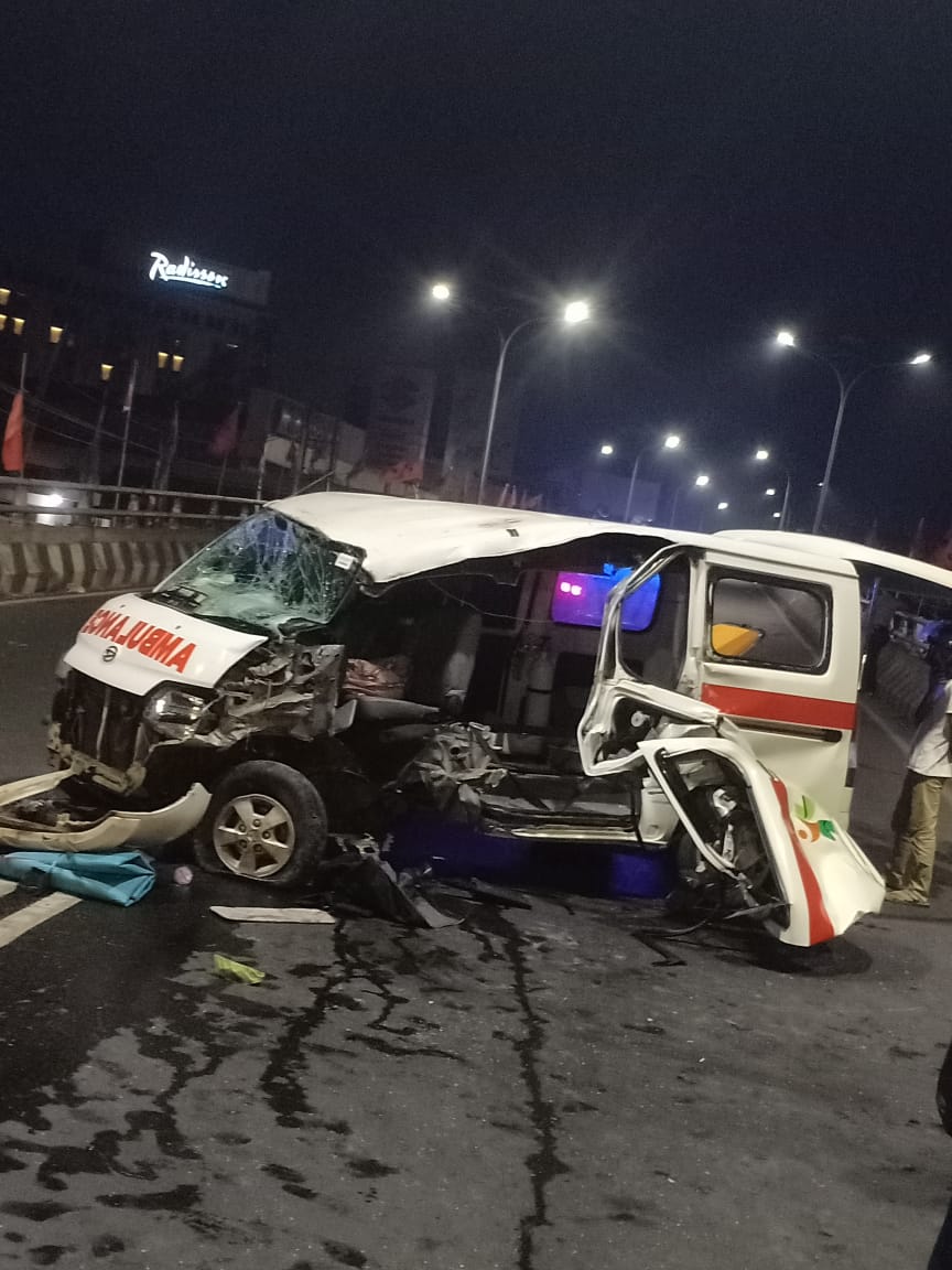 Mobil ambulance yang membawa pasien itu mengalami kecelakaan lalu lintas (lakalantas) cukup parah, di jalan layang atau fly over Mall Boemi Kedaton (MBK) Bandar Lampung, Sabtu (8/8/2020), sekitar pukul 01.00 WIB dini hari.