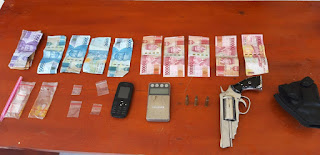“Petugas kami lalu menghampiri pria tersebut, lalu dilakukan penggeledahan badan dan barang yang dibawanya. Saat digeledah sebuah tas kecil selempang warna hitam berhasil ditemukan barang bukti (BB) berupa sebuah senjata api (senpi) ilegal jenis revolver, warna silver yang di dalam silindernya terdapat tiga butir amunisi aktif call 5,56 mm,” ungkap Iptu Timur.