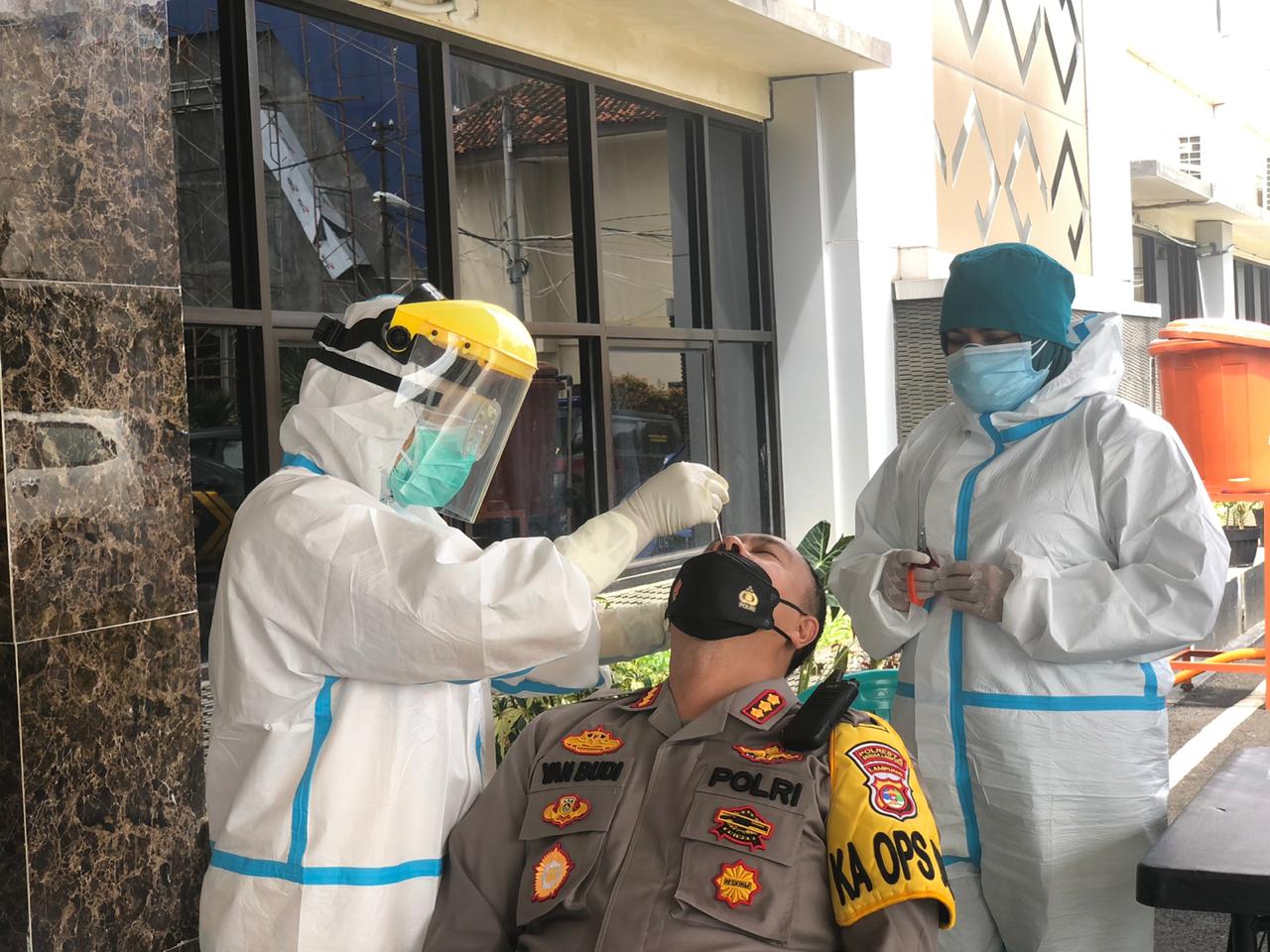 Kapolresta Bandar Lampung Kombes Pol Yan Budi Jaya, S.IK., M.M. usai kegiatan mengatakan, test bertujuan mengetahui kondisi kesehatan personel dari paparan virus corona.