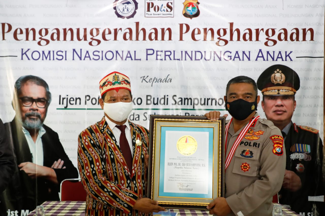 Jakarta – Bertempat di Kantor Komisi Nasional Perlindungan Anak (Komnas Anak), Selasa, 23 Februari 2021, Kapolda Sulawesi Barat, Irjen Pol. Dr. Eko Budi Sampurno, M.Si., hadir memenuhi undangan Polisi Selebriti dalam rangka mengikuti kegiatan acara seremonial penyerahan penghargaan dari Komisi Nasional Perlindungan Anak dan Lembaga Prestasi Rekor Indonesia Dunia (LEPRID).