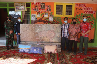 “Dalam kunjungan tersebut, Dandim 0410/KBL bersama dengan Sekretaris PSMTI Lampung Bpk. Hardiyanto Luke dan dari Yukata Lampung Bpk. Johan menyerahkan bantuan berupa 5 unit kasur, serta bantal kepada Ketua Panti Asuhan Ebenheazer Ministry Bpk. Budi.”
