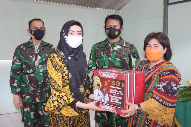 Diakhir kegiatan, Dandim 0410/KBL didampingi Ketua Persit KCK Cab. XXX Dim 0410/KBL memberikan sarana olahraga kepada Koramil jajaran berupa 1 set tenis meja dan juga bingkisan lebaran Idul Fitri 1442 H kepada seluruh personel Koramil jajaran Kodim 0410/KBL. | Je