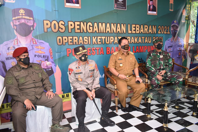 Danrem 043/Gatam Bersama Forkopimda Provinsi Lampung Tinjau Titik Simpul Transportasi Hari Raya Idul Fitri Tahun 1442 H/2021