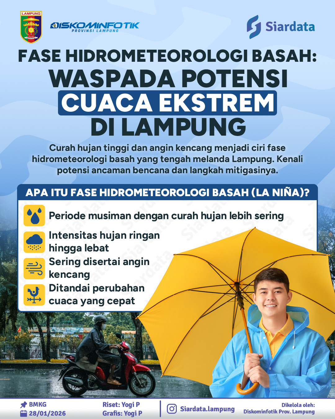 REAKSI.CO.ID——-Fase Hidrometeorologi di Lampung sudah dimulai sejak tgl 11 Oktober 2025 dan diperkirakan masih akan berlanjut hingga akhir februari 2026.