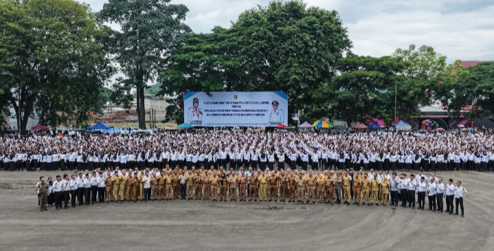 Meski acara diwarnai rintik gerimis, namun raut semangat terpancar di wajah ribuan tenaga honorer yang kini resmi menyandang status PPPK paruh waktu.