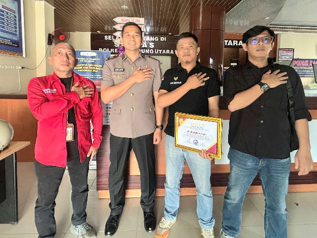 Penyerahan plakat apresiasi tersebut berlangsung secara simbolis di halaman Mapolres Lampung Utara, pada Rabu, 21 Januari 2026, menjelang mutasinya AKP Joni Charter untuk mengemban tugas baru sesuai kebijakan rotasi di lingkungan Kepolisian Negara Republik Indonesia (Polri).