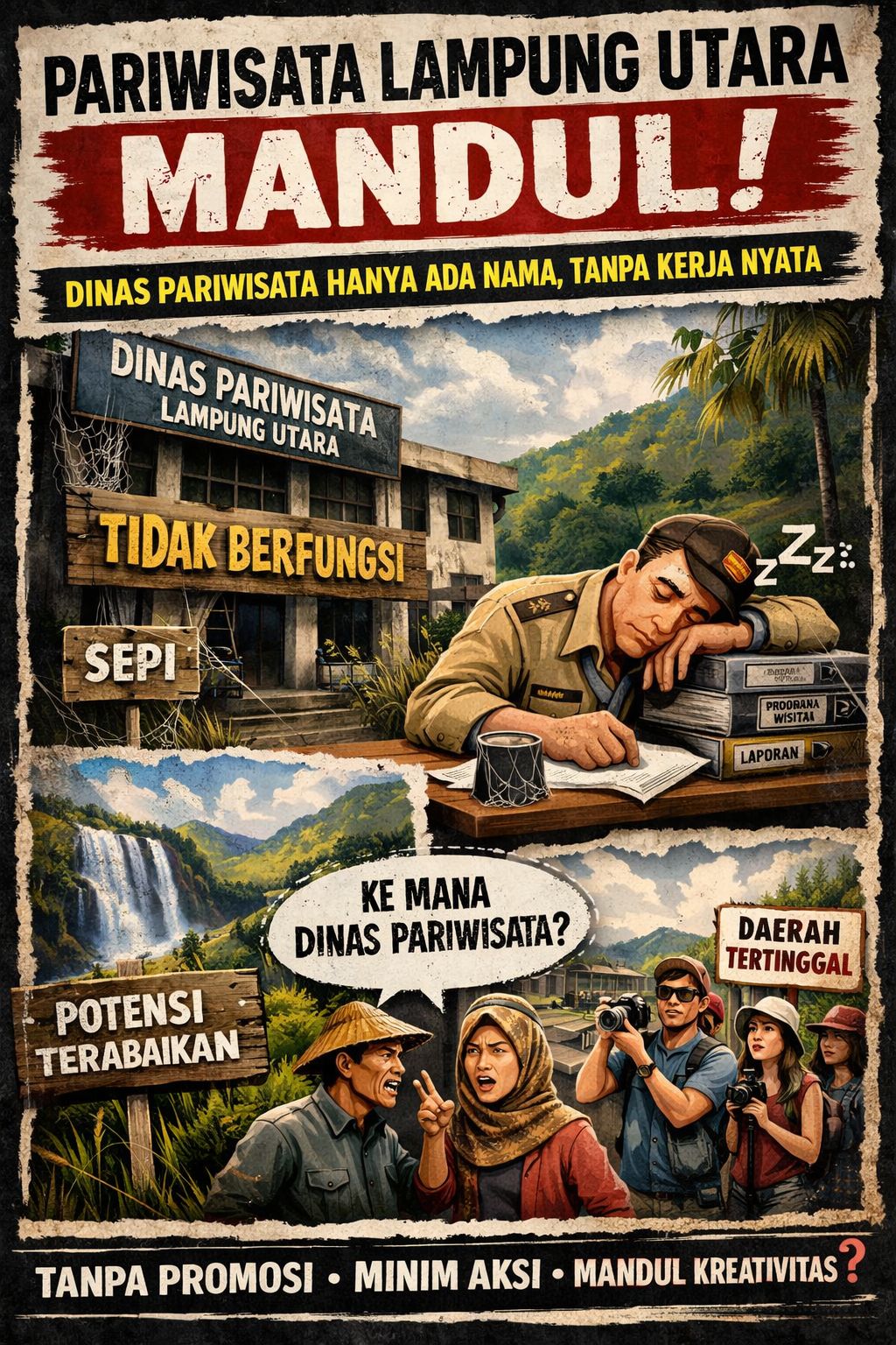Jika kondisi ini terus berlangsung, Lampung Utara hanya akan menjadi daerah dengan potensi wisata besar yang tidak pernah berkembang. Pariwisata yang seharusnya menjadi sumber pertumbuhan ekonomi daerah justru terjebak dalam stagnasi akibat lemahnya perencanaan dan minimnya kreativitas birokrasi.