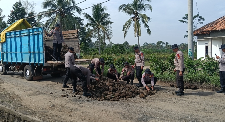 Reaksi.co.id—LAMPUNGBrimobLampung – Personel Satuan Brimob Polda Lampung dari Kompi 2B Pelopor melaksanakan aksi kemanusiaan dengan membantu pembenahan jalan berlubang di beberapa titik di Desa Negara nabung , Kecamatan Sukadana, Kabupaten Lampung Timur. Kegiatan yang melibatkan sinergi antara aparat, masyarakat, ini bertujuan untuk memulihkan akses jalan yang rusak demi keselamatan dan kelancaran mobilitas warga. Perbaikan jalan ini dilakukan pada Kamis,05 Maret 2026.